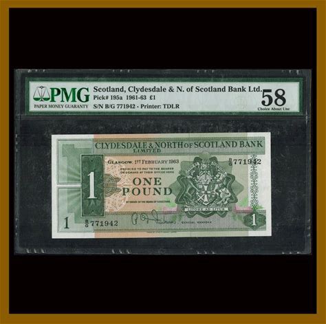 Scotland 1 Pound, 1961-1963 (1963) P-195A Clydesdale/ Scotland Bank (AU) PMG 58