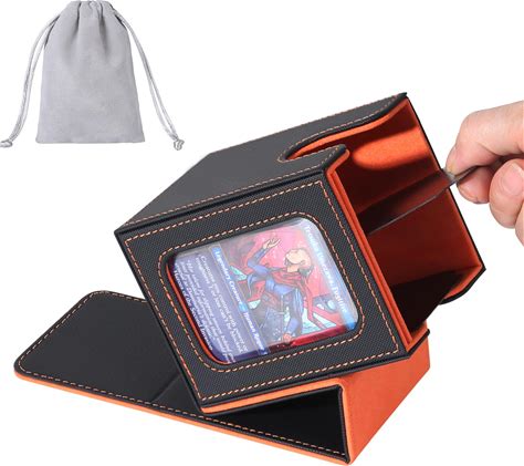 AFIING MTG Deck Box For Commander Display,Card Deck Box Fits 100 Double Sleeved Cards, Magic Commander TCG Card Storage Box With 2 Dividers,Drawstring