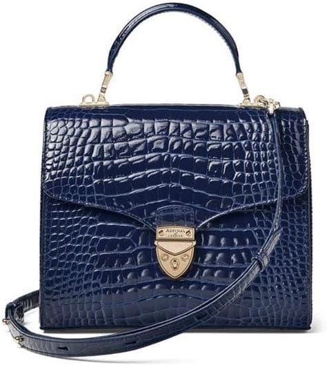 Aspinal Mayfair Dark Leather Crocodile Print Bag - Blue - Top Handle Bags Size 7.5 X9.25 Inches / Depth: 4.25 Inches