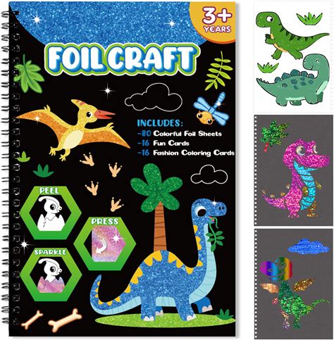 Foil Craft Dinosaur DIY Art Fun Kits, No Mess Creative Foil Art Kits Set Drawing Game For Kids, Birthday Gifts Crafts Supplies Travel Toys For Girls