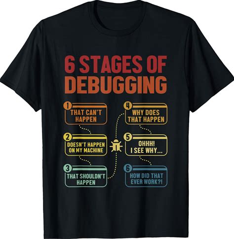 6 Stages Of Debugging Full Stack Coder Software Developer T-Shirt