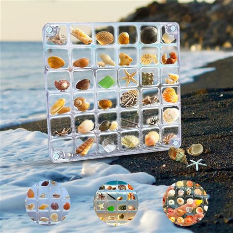 Seashell Display Box Magnetic Case, Acrylic Sea Shell Display Box With 36 Gri...