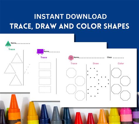 Printable Preschool Shape Tracing Worksheets | Trace, Draw,|Color Basic Shapes | Instant Download For Fine Motor Skills| Handwriting Pract