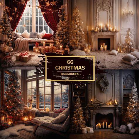 66 Christmas Digital Backdrop Festive Boho Holiday Background For Photoshop Rustic Winter Scene Overlay, Perfect For Portraits Holiday Cards