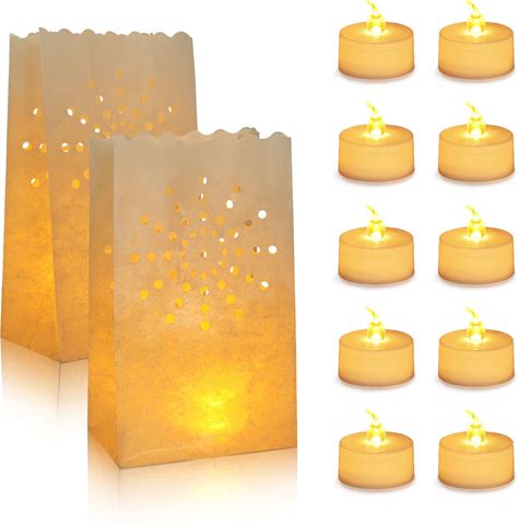 Acelist 50 Set LED Candles With Luminaries Bags,Paper Luminary Bags Flickering Tea Light Battery Operated For Wedding Party,Halloween,Christmas,