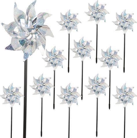 Winemana 12 Pcs Reflective Pinwheels Outdoor, Wind Spinners For Yard & Garden, Sparkly Bird Repellent Windmill Scare Birds Away, Deterrent Devices For