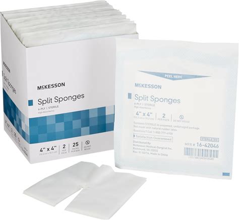 Mckesson Split Sponges High Absorbency, 6-Ply Sterile, I.V. And Tracheostomy Dressings, Polyester/Rayon Blend, 4 in X 4 In, 2 Per Pack, 300 Packs, 600