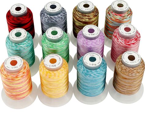 New Brothread 12 Colors Variegated Polyester Embroidery Machine Thread Kit 500m (550Y) Compatible With Brother Janome Babylock Singer Pfaff Bernina
