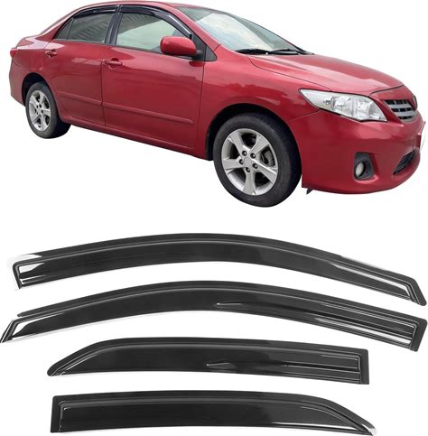 Window Visor Compatible With 2009-2013 Toyota Corolla, Acrylic Smoke Tinted & Semi-Transparent Sun Rain Shade Guard Wind Vent Air Deflector By IKON
