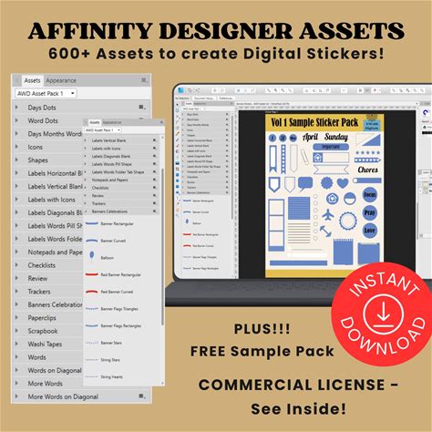 Digital Sticker Asset Templates Affinity Designer Photo Habit Trackers Checklists Paperclips Banners Commercial Use Terms 600+ Color Washi