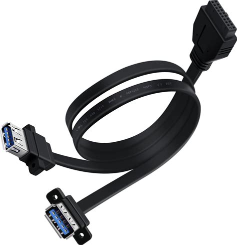 Hualisiji USB 3.0 Front Panel Cable 5Gbps USB 3 0 Header Extension Cable 19/20 Pin USB 3.0 Front Panel Extension With Panel Mount Holes (50 Cm)