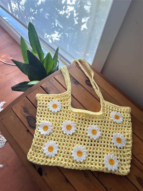 Daisy Crochet Mesh Bag Pattern Floral Tote Bag Crochet Pattern Easy Crochet Bag Pattern Summer Beach Tote PDF Crochet Pattern Bag