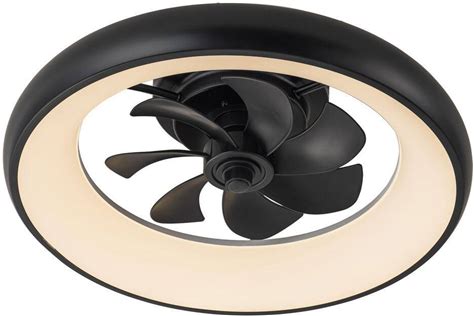 28in. LED Indoor Black Starry Night Bladeless Smart App Control Low Profile Ceiling Fan W/ Light Flush Mount Ceiling Fan