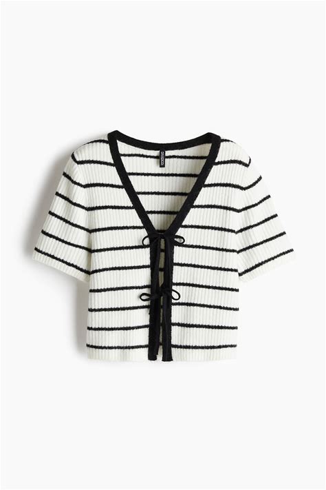 Ladies - Cream/Striped Tie-Detail Rib-Knit Top - Size: M - H&M