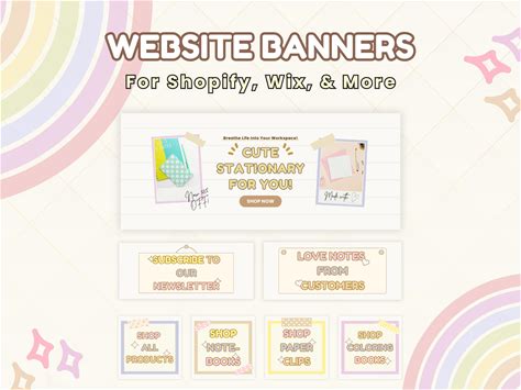Pastel Website Banner Template For Artsy Shops, Cute Playful Web Header Banners Editable In Canva, Aesthetic Wix Shopify Designs Bundle Kit