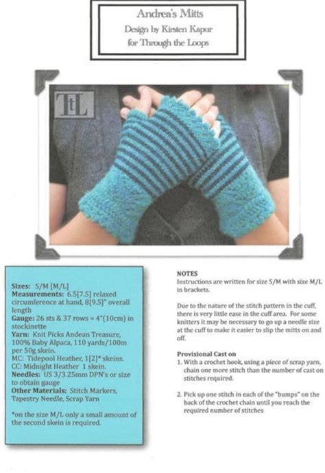 Andrea's Mitts, Kirsten Kapur, Fingerless Mitt Pattern, Knitting Pattern, Sport Weight Yarn,