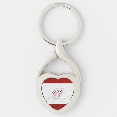 Elegant Gold Red White Wedding Monogram Keychain