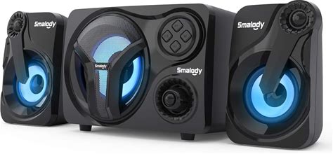 Smalody Computer Speakers With Subwoofer, 2.1 Loud Sound System Speakers, Cool Blue LED, Multimedia Desktop Speaker With Bluetooth/AUX-In/USB TF Slot Compatible With PC, Desktop, Laptop Pack Of 2