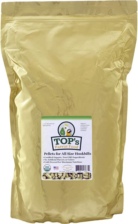 TOP's Parrot Food Pellets Hookbills, Small, Medium And Large Parrots - Non-GMO, Peanut Soy & Corn Free, USDA Organic Certified - 10 Lb / 4.53 Kg