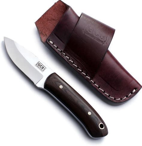 GCS Handmade D2 Tool Steel Custom Survival Hunting Skinning Camping Knife With Brown Leather Right Hand Front Cross Draw Fixed Blade Knife Sheath