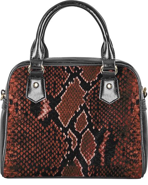 Brick Red Python Snakeskin Print Shoulder Handbag