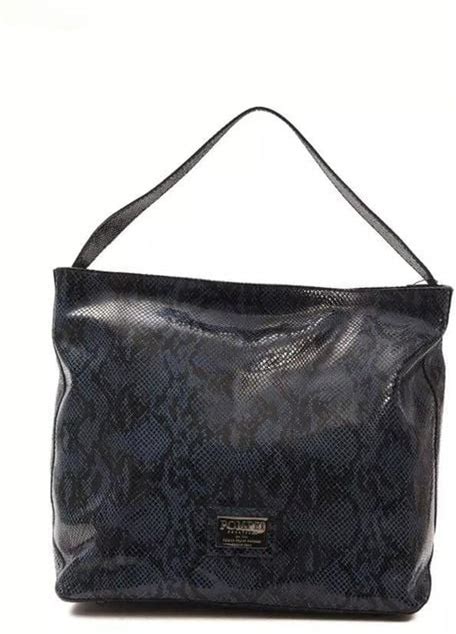 Pompei Donatella Women's Elegant Python Print Leather Shoulder Bag - Black - Shoulder Bags