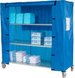 Nexel Galvanized Steel Linen Cart With Nylon Cover, 4 Shelves, 60"L X 18"W X 80"H