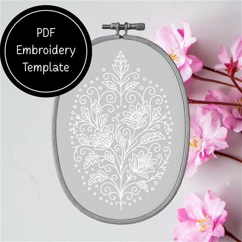 Elegant White Floral Embroidery Pattern - Vintage Botanical Hoop Art Design