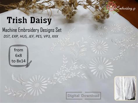 Trish Daisy - Machine Embroidery Floral Whitework Designs Set For Hoop 6X8" And Up.