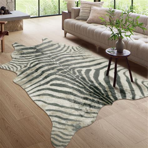 Zebra Rug Animal Print Carpet: 4.6 X 5.2 Feet Faux Zebra Hide Area Rug Western Decor For Living Room Kitchen Bedroom