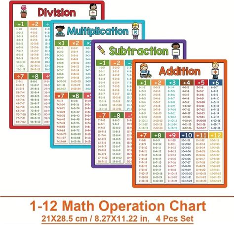 CHUNNIN 4 Pcs Large Educational Math Posters Banner Multiplication Division Addition Subtraction Table Chart Posters For Kids Teacher Elementary