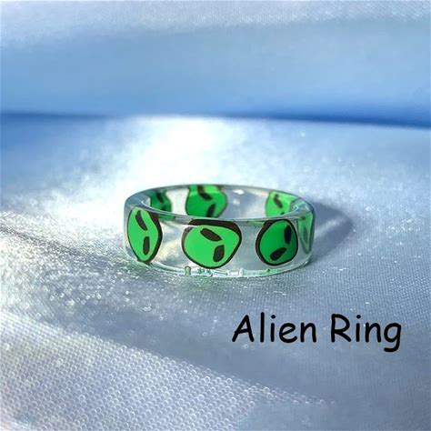 New INS Resin Green Alien ET Rings For Women Y2K Jewelry Punk Fashion Goth Rings Egirl Style Friends