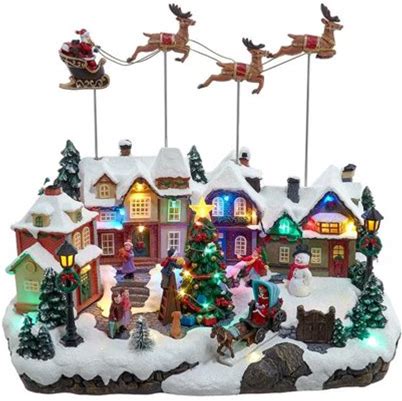 Animated Christmas Village Scene With Santa Sleigh, Led Lights &