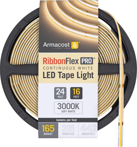 Armacost Lighting Ribbonflex Pro 24V White COB LED Strip Light Tape 3000K, 315 Lumens/Ft, 20m 172260