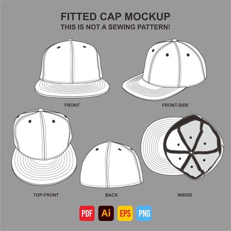 Fitted Cap Hat Vector Mockup Template CAD Illustration