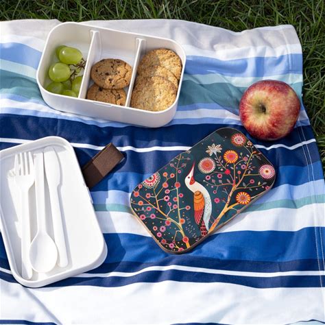 Bento Lunch Box Japandi Art Bird Lunch Box Wood Eco Reusable Lunch Box Scandianvian Japanese Folk Art Lunch Box Japanese Aesthetic Bento Box