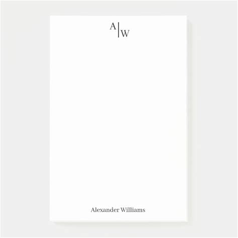 Simple Minimalist Black Monogram Full Name Post-It Notes