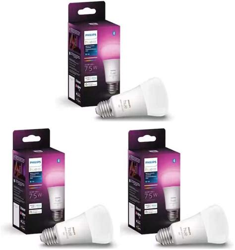 Philips Hue 3-Pack White and Color Ambiance A19 Bluetooth LED Smart Bulbs, Multicolored