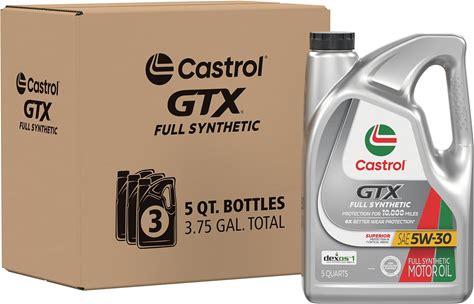 Castrol GTX Full Synthetic 5W-30 Motor Oil, 5 Quarts, Pack Of 3