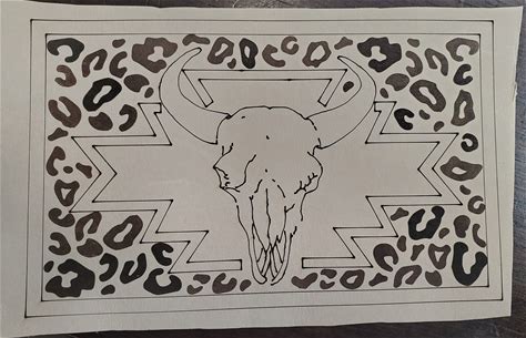Raw Genuine Leather, Lasered With Aztec, Cow Skull, Cheetah Print Design Ready For Your Customization. 6.5X4 Inches.