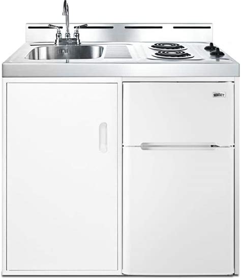 Avanti CK3616 36 Inch Complete Compact Kitchen With 2.2 Cu. Ft. Refrigerator Capacity, Sink, Backsplash, Storage Drawer, Door Bins, And Stainless