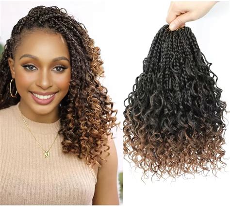 8 Packs Goddess Bohemian Box Braids Crochet Hair With Curly Ends 12 Inch Boho Braids Crochet Box Braids Synthetic Braiding Hair Extensions For Black