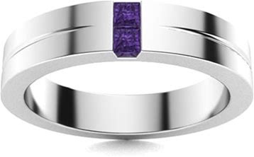 Amethyst Men's Ring In 18K White Gold| Men's Wedding Band| February Birthstone Men's Ring| Cindy
