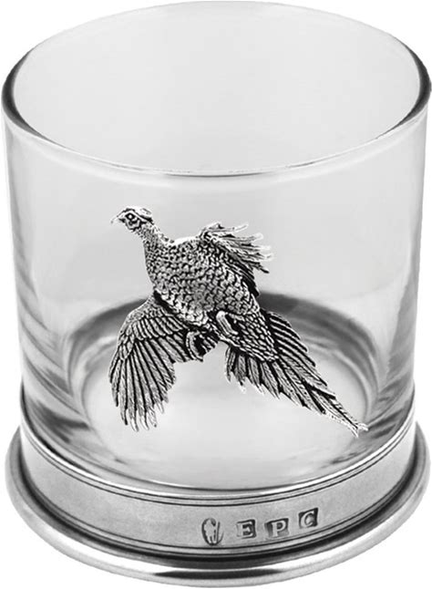 English Pewter Company Sheffield, England Store English Pewter Company 11Oz Old Fashioned Whisky Rocks Glass With Pewter Base And Pheasant Motif [