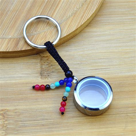 Stainless Steel Glass Locket With 7 Chakra Beads Keychain,DIY Jewelry Making Creative Woven Keychainsand Or Ashes Hair Keychain Memorial