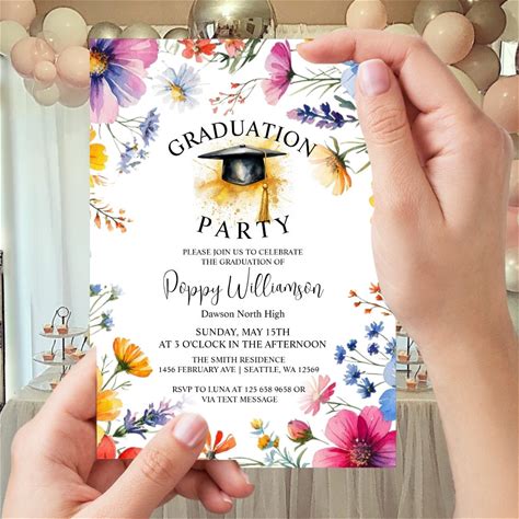 Watercolor Wildflower Graduation Party Invitation