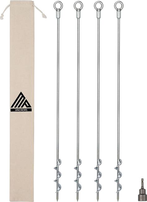 Ground Anchors Screw-In 32" Set Of 4 With Drill Bit - Earth Stakes Heavy Duty For Mobile Home, Shed, Swing Set, Tree, Awning Canopy
