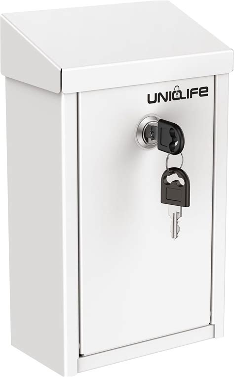 Uniclife Key Drop Box For Outside, White Metal Donation Box Collection Box With Key Lock, Safe Suggestion Box, Wall Mounted Mailbox With Top Slot,