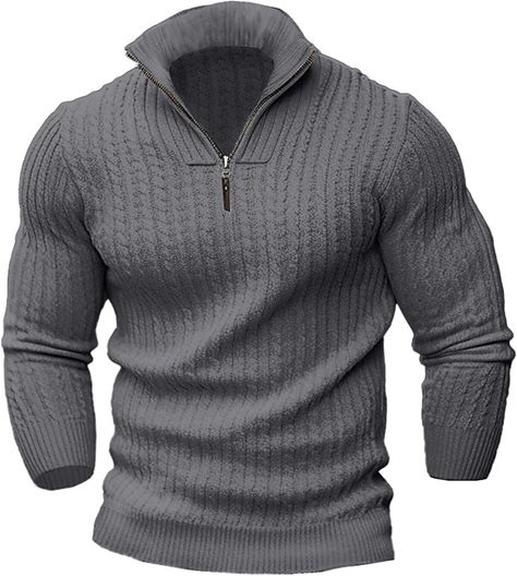 Men's Pullover Sweater Jumper Quarter Zip Sweaters Knit Top Quarter Zip Pullover Sweater Ribbed Knit Regular Knitted Quarter Zip Plain Quarter Zip Kee