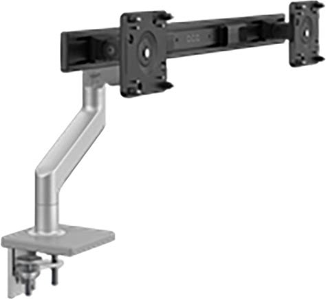 Humanscale M8.1 Adjustable Dual Monitor Arm With Crossbar And Handle - Two Piece Clamp Mount - Silver M81CMSB2B